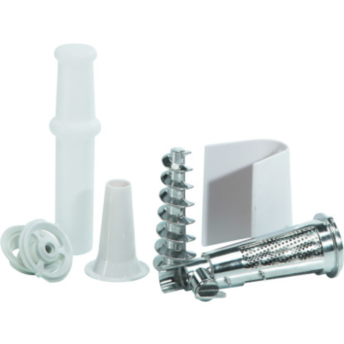 Насадка для томату -1 шт., насадка для ковбасок -1 шт., насадка «кеббе» - 1 шт., штовхач -1 шт.