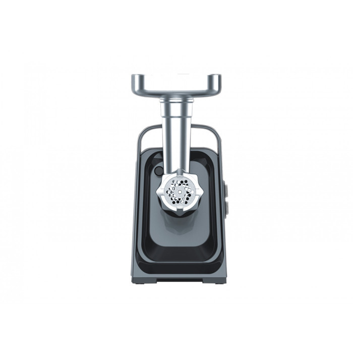 Потужність: 2000 Вт (при заклинюванні); Продуктивність: 1,4 кг/хв.; Функції: захист від перегріву, реверс; Аксесуари: 3 диски для помелу (3 мм/5 мм/7 мм), насадка для ковбас, насадка для кеббе, соковитискач для томатів, штовхач, металевий лоток; Матеріал шнека: нержавіюча сталь; Матеріал: нержавіюча сталь; Розмір виробу: 27,9 х25, 8х15, 5 см; Колір: чорний.