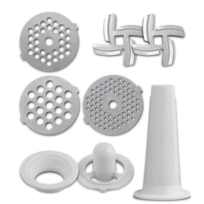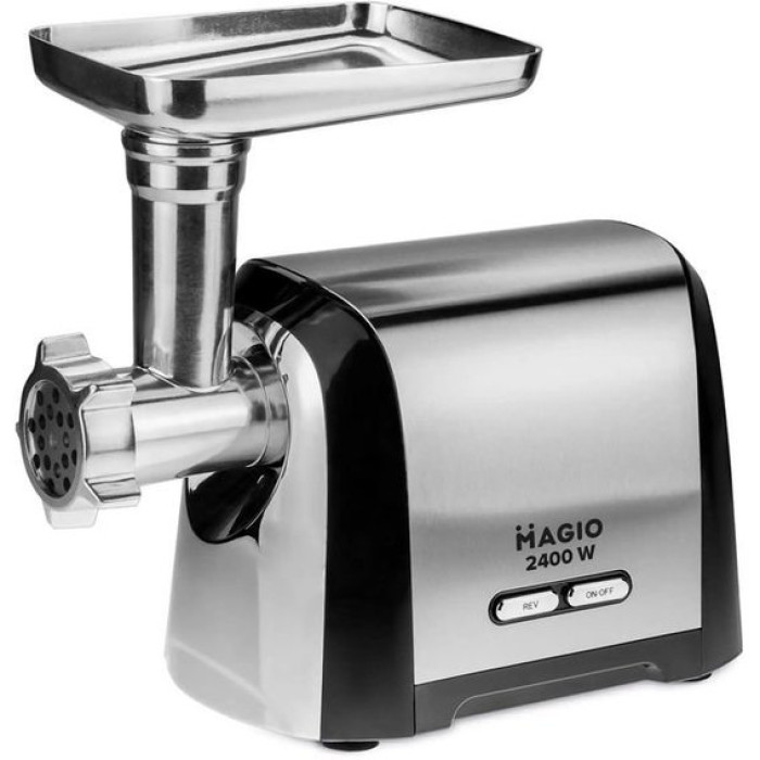 Потужна м'ясорубка MG-269 у 2400 Вт допоможе Вам швидко та з легкістю подрібнити м'ясо, рибу та овочі. Два режими роботи допоможуть впоратися навіть із жорстким м'ясом та жилками. Також у комплекті з м'ясорубкою йде два ножі з нержавіючої сталі, які прослужать Вам довго. Завантажувальна платформа дозволить з великою зручністю забезпечити вихід вихідного продукту. При цьому маленькі шматочки не будуть падати повз. За допомогою насадки для ковбасок Ви зможете легко приготувати домашні ковбаски, сосиски або сардельки: натуральна оболонка кріпиться на цю насадку, насадка – на шнек, і Вам залишається лише контролювати наповнення майбутньої ковбаски фаршем. А насадка «кеббе» допоможе Вам отримати порожнисті трубочки для подальшого наповнення їх фаршем і обсмажування. Функція «Реверс» допоможе впоратися з їжею, що застрягла, і Вам не доведеться розбирати прилад і витягувати те, що заважає його роботі, вручну.