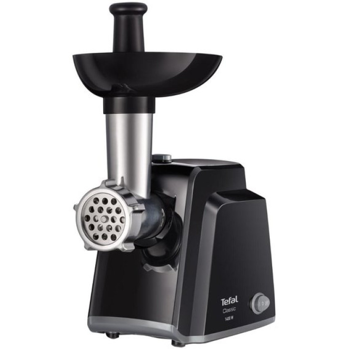 Компактна електрична м'ясорубка Tefal NE105838 своїми можливостями порадує будь-яку господарку та прискорить процес приготування фаршу. Корпус моделі виконаний із міцного пластику. М'ясо кладеться у місткий завантажувальний лоток і просувається штовхачем. Потужність приладу 1400 Вт дозволяє досягти продуктивності 1,7 кг/хв, забезпечуючи якісний помел для отримання гарного фаршу. Застосовуючи дві металеві ґрати з різними діаметрами отворів, можна виготовити два види фаршу для різних рецептів. Насадки, що додаються, для формування ковбасок і кеба розширюють можливості пристрою. Реверсна система та гострий ніж допоможуть впоратися з м'ясом будь-якої жорсткості. Електрична м'ясорубка Tefal NE105838 на кухонній поверхні займає мало місця, стійка, просто збирається та розбирається. Усі її знімні деталі після закінчення роботи легко миються.
