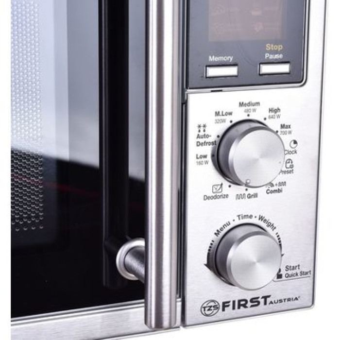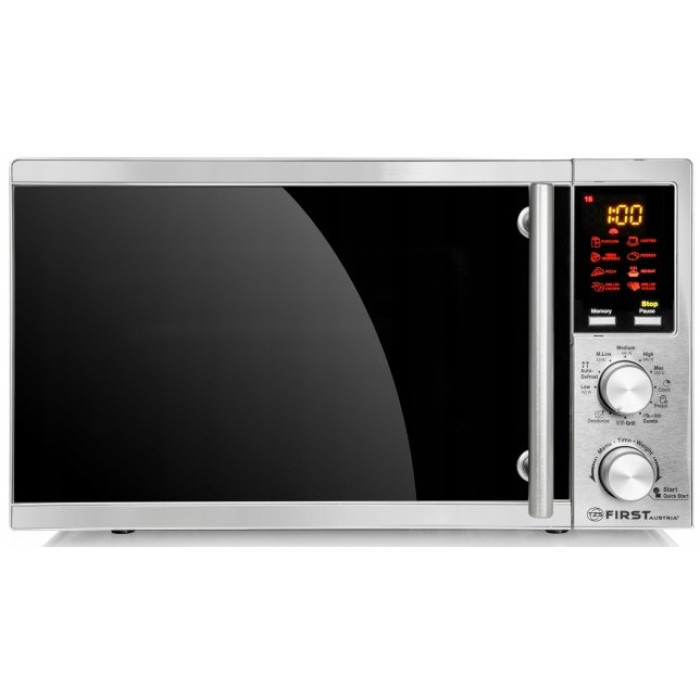 Мікрохвильова піч First Austria оснащена 8 наперед визначеними програмами для скорочення часу обслуговування. Серед них: - автоматичне приготування попкорну; розігрів свіжих овочів; випічка хрумкої піци, курка гриль; підігрів напоїв, кава, чай у склянці; розігрів картоплі; розігрів м'яса; стейки на грилі. Завдяки функції батьківського замку (утримуйте кнопку «PAUSE/STOP» протягом 3 секунд), духовка буде заблокована, і дитина не ввімкне її, що може захистити здоров'я дитини та будинок від пожежі.