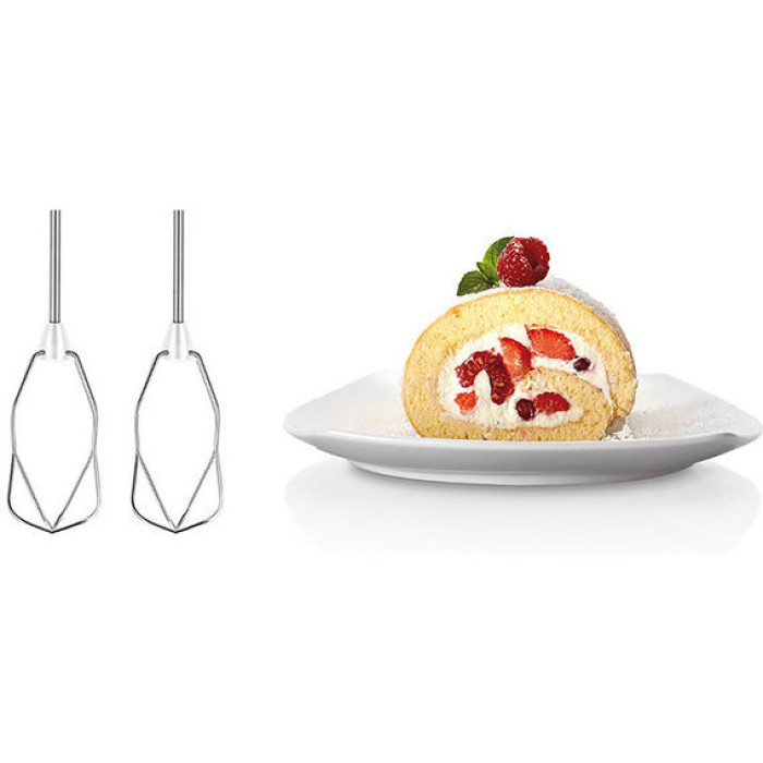 Всі пластикові деталі, що контактують із продуктами, не містять бісфенолу-А Універсальність 2 надзвичайно ефективних турбовенчика 2 гаки для тесту