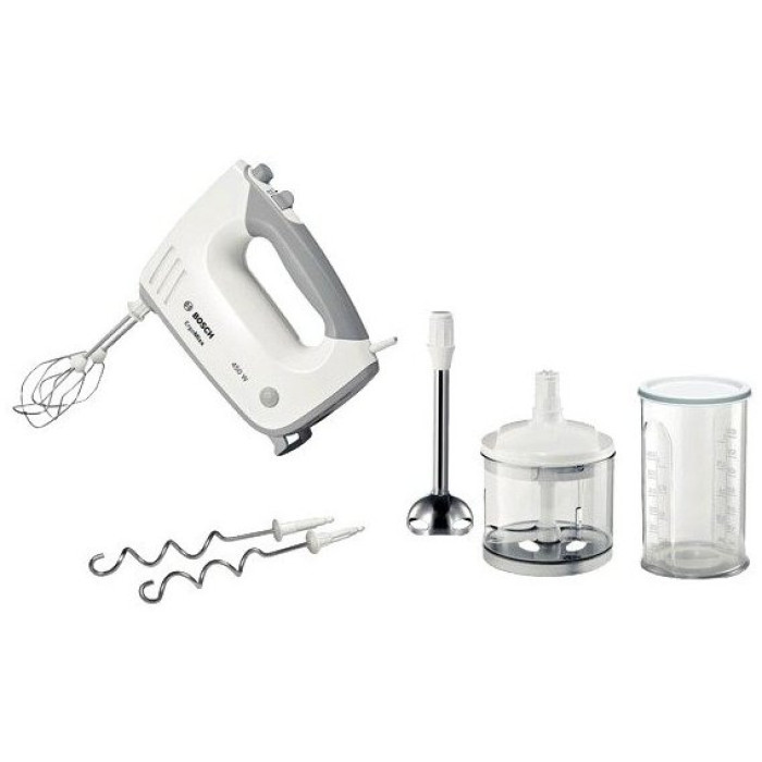 Міксер Bosch MFQ36480 — це дуже компактний і практичний міксер, призначений спеціально для тих користувачів, які, насамперед, цінують зручність і функціональність в одному образі. Ця модель ідеально лягає в руку, завдяки точно продуманій ергономіці. Потужності в 450 Вт буде більш ніж достатньо для того, щоб якісно збити різні продукти, швидко замісити тісто, подрібнити інгредієнти в чопері завдяки наявності додаткових насадок. Застосування сучасних технологій і використання неіржавкої сталі високої якості подарували можливість мати на кухні чудового помічника, який тривалий час слугуватиме Вам вірою і правдою. Така модель спокійно може замінити кухонний комбайн.