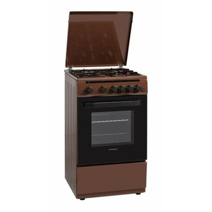 Плита відрізняється розширеними функціями приготування, зручним керуванням та відмінною якістю. Міцна та довговічна емаль, покриття поверхні, не боїться температури і навіть при регулярному чищенні не втратить свій початковий блиск. Варильна поверхня плити складається з 4 конфорок. Робота можлива на газі двох типів, перехід здійснюється зміною форсунок. Зручне регулювання полум'я з фіксованим мінімальним рівнем не дозволить вам випадково погасити вогонь необережним рухом. Плита має зручний механічний таймер, його можна використовувати як нагадування про те, що потрібно вимкнути плиту. Таймер можна використовувати для інших цілей, оскільки його робота не залежить від увімкнення конфорок або духовки. Система газ-контролю виключить витік газу та дозволить вам спокійно працювати, знаючи, що ви у повній безпеці.