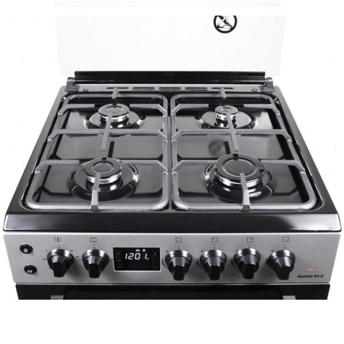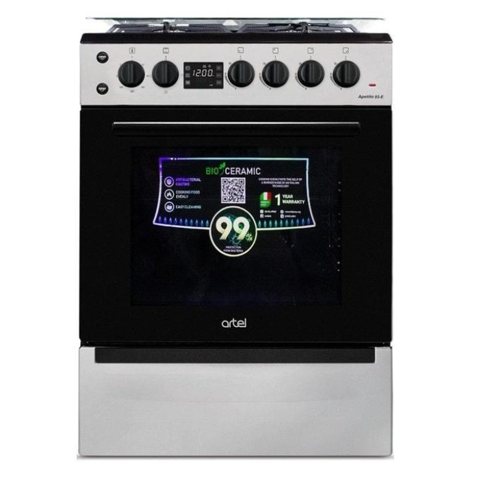 Газова плита Apetito 03-E від узбецької компанії Artel оснащена чотирма конфорками, електродуховкою з підсвічуванням об'ємом 65 літрів та функцією електричного грилю.