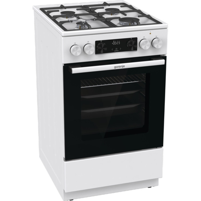 Плита комбінована Gorenje GK5C43WF – це стильне та функціональне рішення для вашої кухні. Завдяки поєднанню газової поверхні та електричної духовки цей прилад забезпечує максимальну зручність у використанні. Варильна поверхня обладнана чотирма конфорками, включаючи додаткову та велику конфорку, що дозволяє ефективно готувати страви різних типів. Конфорки мають різну потужність: ліва передня – 1 кВт, права передня – 3 кВт, ліва задня – 1.9 кВт, права задня – 1.9 кВт. SoftClose шарнір забезпечує плавне закриття дверцят духовки, а унікальна форма Homemade створює оптимальні умови для випікання. Духовка оснащена електронним програматором IconLed, що полегшує налаштування приготування страв.
