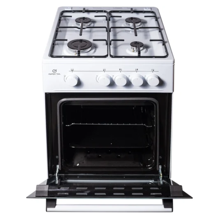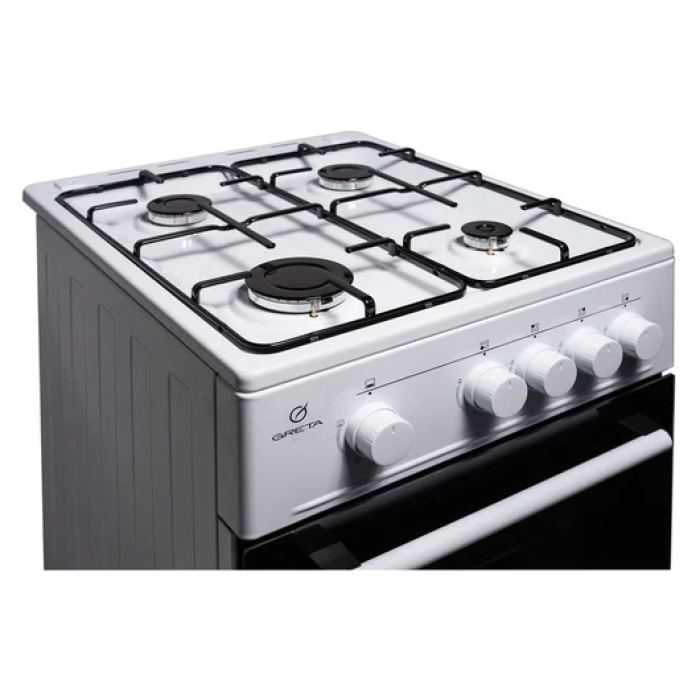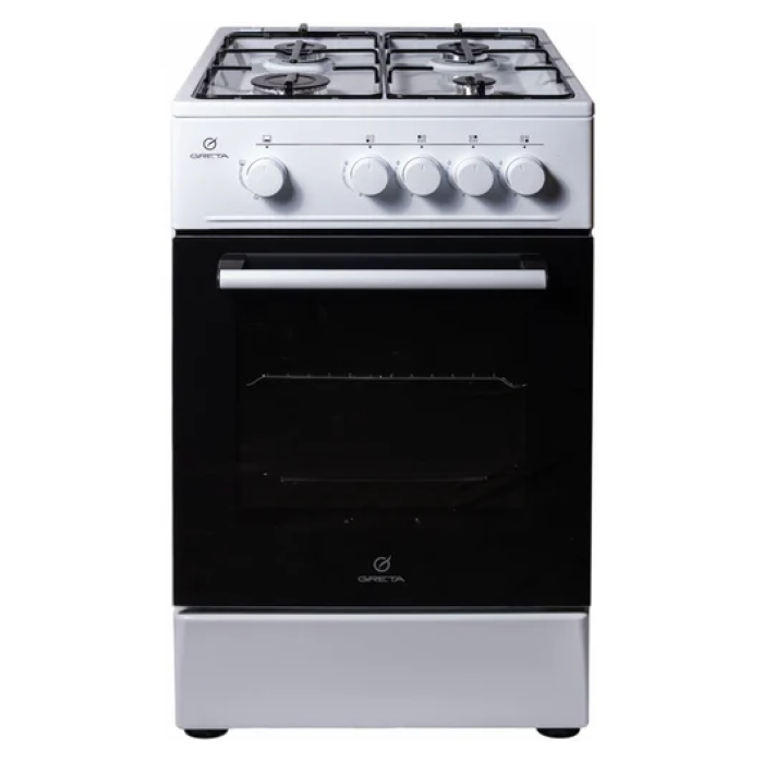 Greta KGG 50 MN 13 W – кухонна плита з газовою варильною поверхнею та газовою духовкою об'ємом 54 л. Регульовані ніжки дозволяють змінити висоту плити та надійно її встановити. Надійні сталеві грати покриті емаллю, вони зручні у використанні та догляді. Емальовані грати витримують високі температури та забезпечують стійкість посуду різного розміру. Газ-контроль конфорок та духовки гарантує безпеку при випадковому згасанні полум'я конфорок або духової шафи. Датчики газ-контролю самостійно реагують на зміну температури та перекривають витік газу. Безпека вашого будинку під надійним наглядом!