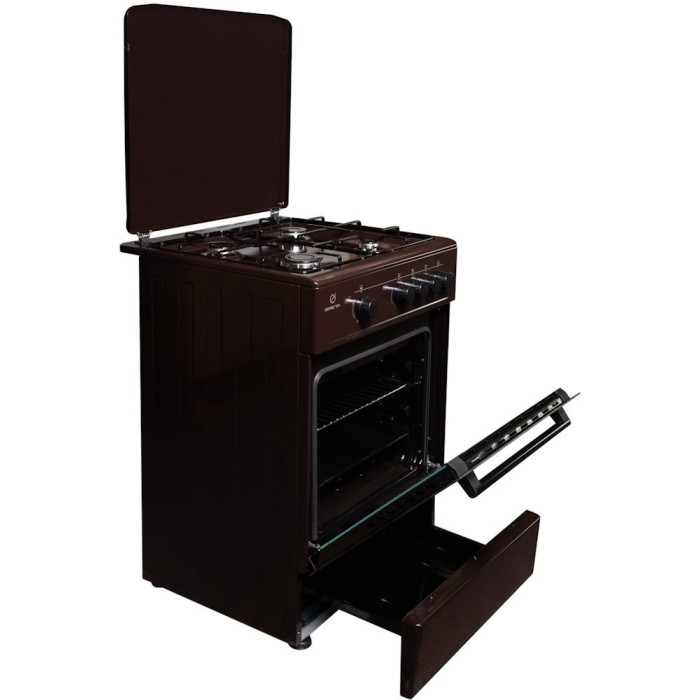 Висувна скринька для посуду. Рельєфні напрямні духовки. Емаль легкої очистки духовки. Аксесуари: глибоке деко, грати