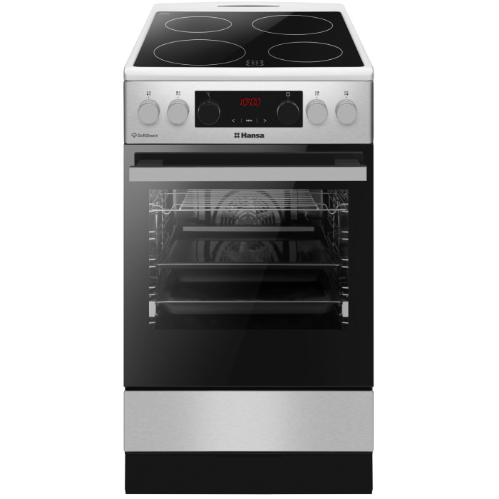 Комбінована плита HANSA FCCXS58363 поєднує склокерамічну варильну поверхню та містку електричну духову шафу. Вона оснащена кількома режимами приготування, що дозволяє готувати різні страви від запікання до смаження. Практичний дизайн та зручність у використанні роблять модель HANSA FCCXS58363 надійним рішенням для кожної кухні.