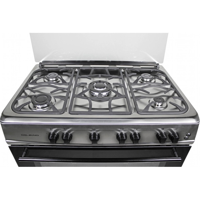 Газова плита ML90 G5/01 від грузинської компанії MILANO оснащена 5 конфорками та газовою духовкою об'ємом 112 літрів.