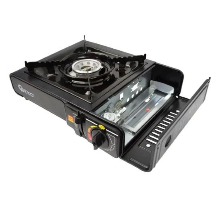 Плита працює від картриджів, які зазвичай використовуються в пристроях такого типу. Він оснащений п'єзоелектричним запальником, завдяки якому для розпалювання печі не потрібні сірники або запальничка. Пальник має додаткові виступи, що забезпечують рівномірне нагрівання поверхні. Пекти має подовжувач для гриля, що робить її ідеальним рішенням для виїздів на природу, кемпінгу і т.д.