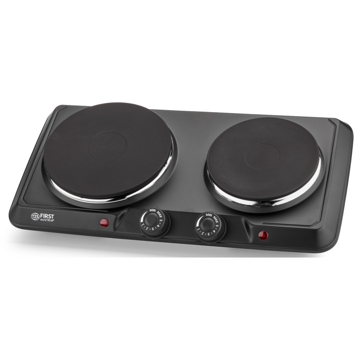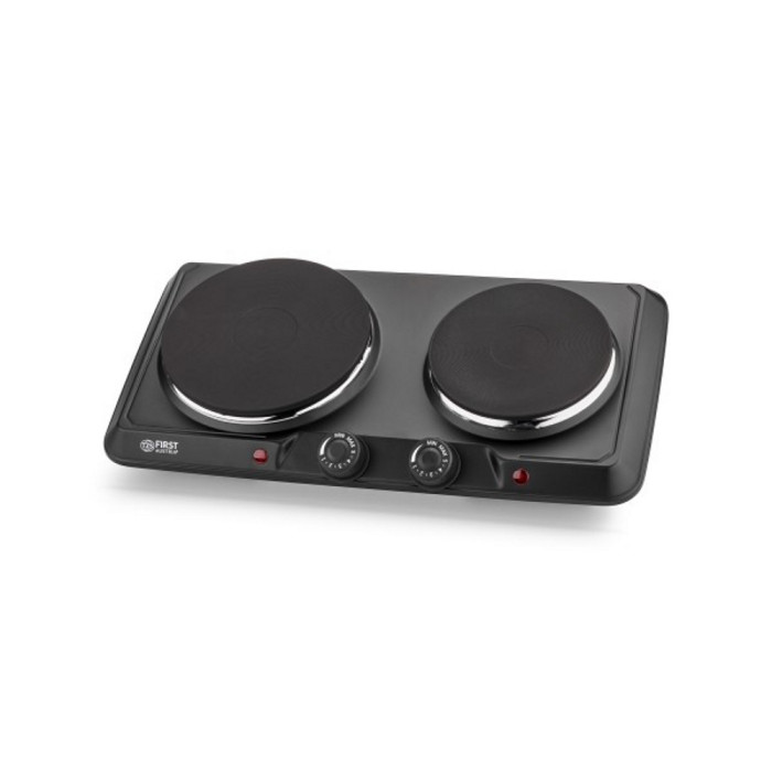 Настільна плита електрична FIRST FA-5083-5 з двома конфорками потужністю 2500 Вт та регульованим термостатом. Вона відмінно підходить для приготування різних страв, оскільки сумісна з посудом з металу, кераміки, емалі та інших матеріалів.