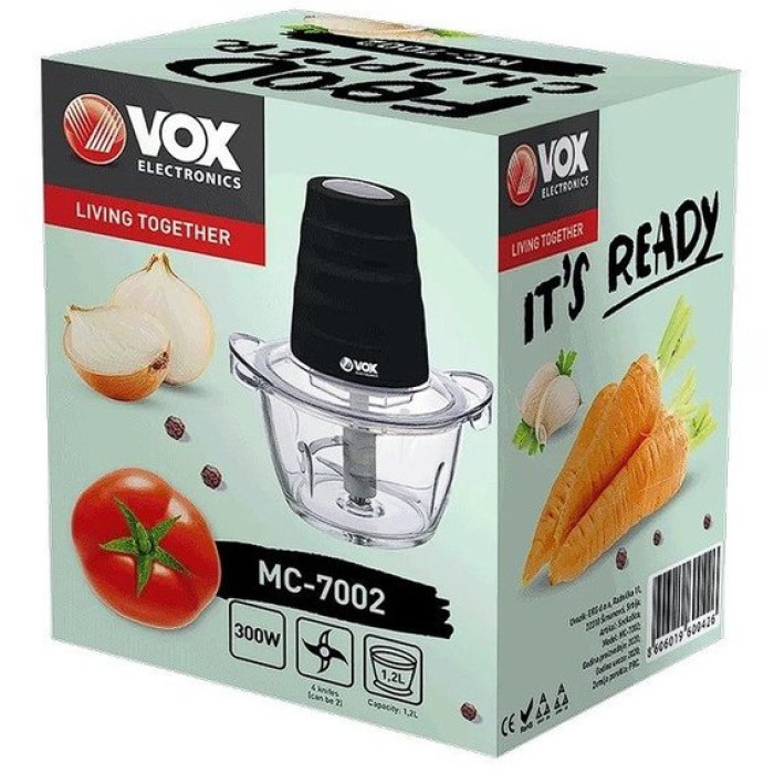 Компактний подрібнювач VOX Electronics MC7002 чорного кольору для швидкого подрібнення інгредієнтів та приготування різних соусів. Просто помістіть продукти та натисніть кнопку для початку подрібнення. Має достатню силу для подрібнення фруктів, овочів та інших продуктів, також підходить для приготування пюре та дитячого харчування. Компактний та ергономічний дизайн. Потужність: 300 Вт.