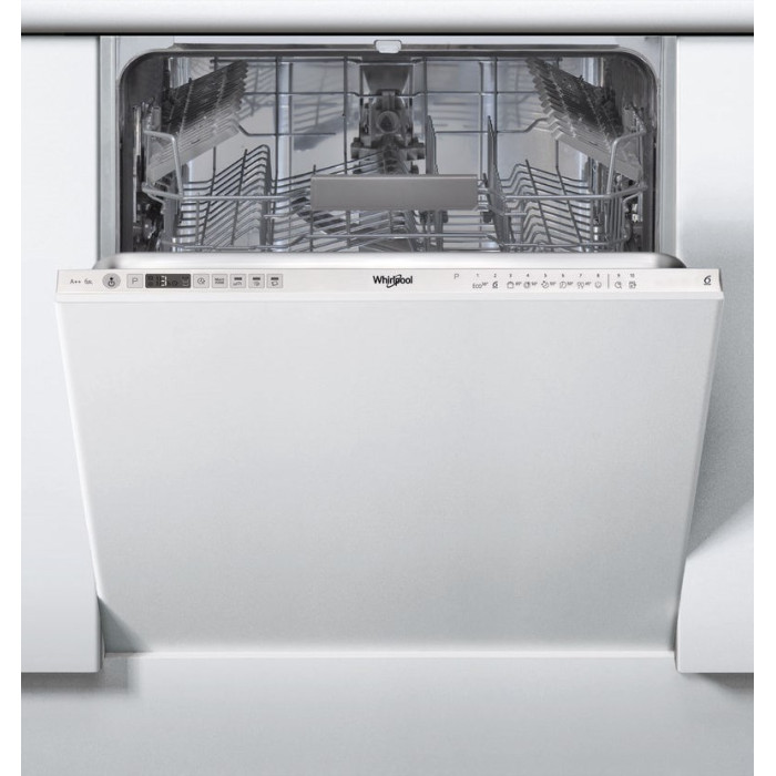 Посудомийку торгової марки Whirlpool, що вбудовується в нішу шириною 60 см, можна віднести до рішень середнього цінового сегмента. Модель характеризується гарною місткістю, адже за раз у робочій камері можна відмити від забруднень до 14 комплектів посуду. При цьому пристрій дозволяє уникнути великої витрати ресурсів: на цикл йому потрібно від 7 літрів води, а енергоспоживання відповідає класу A++.