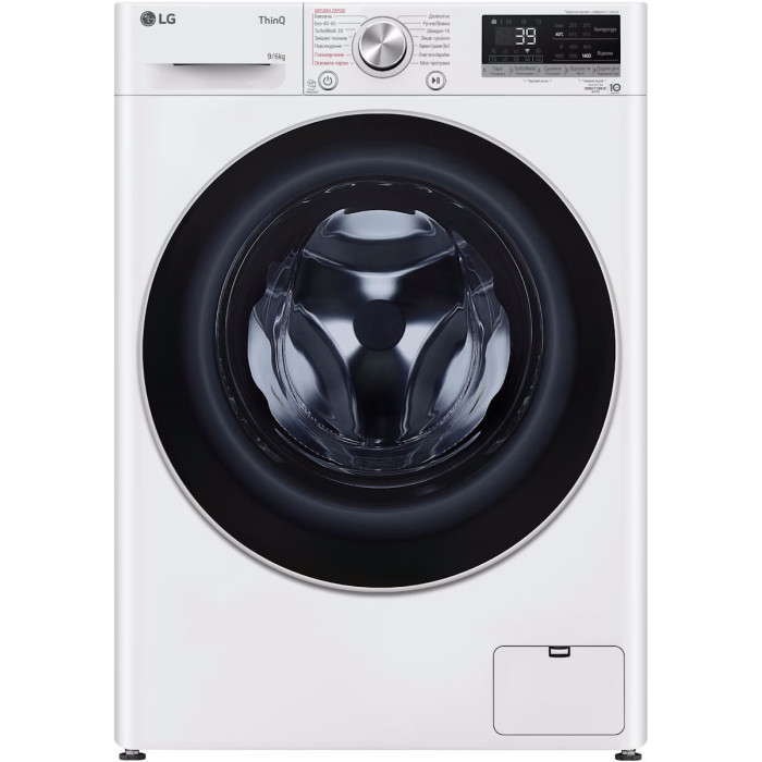Пральна-сушильна машина LG F4V7VG1W - фронтальна модель з функцією 2 в 1, розрахована на прання до 9 кг та сушіння до 6 кг білизни. Оснащена інверторним двигуном Direct Drive, який безпосередньо з'єднаний із барабаном, забезпечуючи стабільну та тиху роботу. Максимальна швидкість віджиму досягає 1400 об/хв, при цьому клас ефективності віджиму — B, а енергоспоживання відповідає рівню A. У пристрої передбачено 14 програм прання, включаючи режими для бавовни, змішаних тканин, делікатних речей, вовни, антиалергенну обробку парою та очищення барабана. Технологія AI DD дозволяє аналізувати тип тканини та вагу завантаження, щоб адаптувати алгоритм прання - це знижує знос тканин до 18%. Швидка програма TurboWash справляється з повсякденним пранням лише за 39 хвилин, що особливо зручно при обмеженому часі. Для етапу сушіння використовується технологія EcoHybrid, що дозволяє вибирати між економією води чи електроенергії. Завдяки вбудованому модулю Wi Fi та підтримці системи LG ThinQ можливий віддалений контроль пристрою, завантаження додаткових програм та діагностика несправностей через функцію Smart Diagnosis. Барабан об'ємом 68 літрів виготовлений з нержавіючої сталі, має спеціальну текстуру та шість ребер для дбайливого поводження з тканиною. Габарити машини становлять 850 600 565 мм, маса - близько 71 кг. Передбачені захист від дітей, контроль піноутворення та дисбалансу, функція дозавантаження білизни, відкладений старт, сенсорне та механічне керування, дисплей та звукове сповіщення.