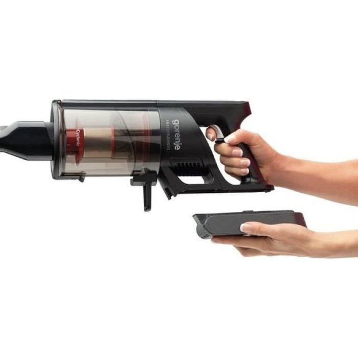Gorenje SVC252FMBK належить до традиційних пилососів за структурою та керуванням, які складаються з телескопічної шланги та основи зі щіткою. Дана модель пилососу призначена лише для сухого збирання. Пилозбірник працює в системі циклон – коли пил розкручується під впливом потоку повітря та осідає біля стінок, а очищене повітря проходить далі. Пилосос працює на акумуляторі та час його автономної роботи складає до 1 години. Час заряджання акумулятора пристрою становить 5 годин. Фільтр тонкого очищення подбає про чистоту вашого повітря під час прибирання.