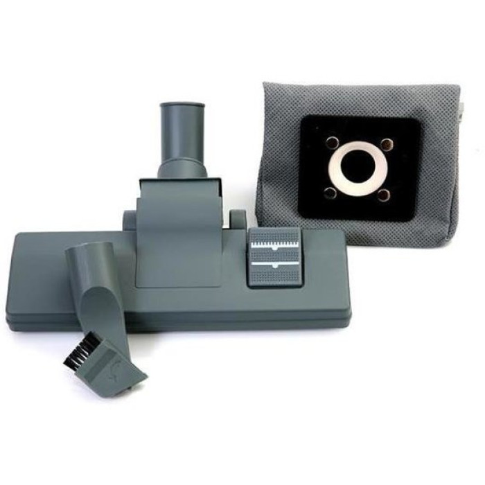 За допомогою універсальної насадки підлога-килим ви зможете почистити підлогу і килимові покриття, а щілинна насадка і насадка для збору пилу легко проникне в важкодоступні місця. Для того щоб процес прибирання був максимально комфортним, ви зможете відрегулювати довжину пластикової складової труби під свій зріст. Колеса на корпусі забезпечують максимальну маневреність приладу. Ергономічний компактний дизайн і невелика вага дозволять легко перемістити пилосос сходами або перенести його через поріг. Ця модель розрахована на використання тканинних мішків або паперових одноразових. Місткість мішка для збору пилу 2 літри, чого цілком вистачає на кілька збирань. Тут також передбачено індикатор заповнення мішка та автоматичне змотування шнура.