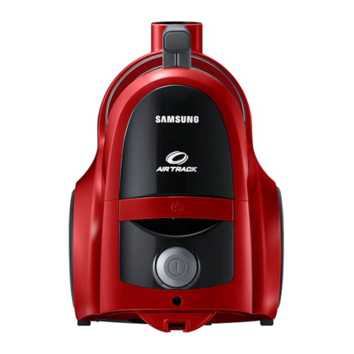 Електроприлад має яскравий компактний корпус із міцного пластику червоного кольору. Забруднення поділяються та накопичуються в прозорому циліндричному сміттєзбірнику, який просто зняти для очищення. Для зручності перенесення на пилосос Samsung VCC45W0S3R встановлена передня ручка, що є частиною контейнера. Перед початком використання корпусу підключають гофрований гнучкий шланг, сталеву телескопічну трубу, довжину якої можна змінювати.