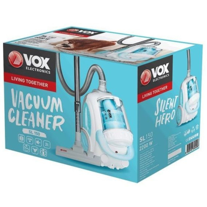 Безмішковий пилосос VOX Electronics SL150 потужністю 2200 Вт, що має двигун з низьким енергоспоживанням та зручний компактний дизайн, забезпечує відмінні результати прибирання. Його передова 3-рівнева фільтрація вловлює понад 99,98% частинок пилу для забезпечення чистоти повітря вдома. Контейнер об'ємом 2 л ідеально підходить для різноманітних житлових приміщень, пропонуючи більшу автономність та легкий процес очищення контейнера від пилу. А завдяки великому радіусу 11 м процес збирання з VOX Electronics дуже зручний та комфортний, без необхідності перемикання пилососу між розетками.