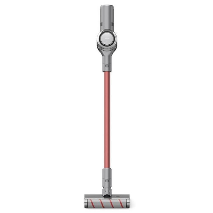 Вертикальний+ручний пилосос (2в1) Dreame Cordless Vacuum Cleaner V11 виробляється в кольорі сірий металік з подовжувальною ручкою та деякими деталями кольору червоний металік. Автономний пристрій максимальною потужністю 450 Вт служить для сухого збирання. Він живиться від акумулятора ємністю 3000 мАг, енергія якого забезпечує 90 хвилин безперервної роботи. Потім потрібно 4-годинне відновлення повного заряду. Встановлений у приладі безщітковий двигун розвиває 125 000 оборотів за хвилину, створюючи потужність всмоктування 150 аероват. Вона регулюється перемикачем на корпусі та завдяки 12-конусній циклонній технології підтримується на постійному рівні. Крім універсальної насадки для підлоги та килима, модель укомплектована щілинною насадкою для важкодоступних місць. Все сміття накопичується в півлітровому прозорому контейнері, який легко і гігієнічно звільняється від вмісту. Повітря, що виходить, очищається 5-ступінчастою системою фільтрації, що включає НЕРА фільтр НЕРА Н12. Зберігати вертикальний+ручний пилосос (2в1) Dreame Cordless Vacuum Cleaner V11 слід у вертикальному положенні.
