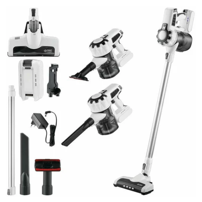 FIRST FA-5541-4 бездротовий акумуляторний пилосос, який вражає своєю ефективністю та гнучкістю. Як ручний або пилосос для підлоги, він встановлює нові стандарти чистоти в будинку.