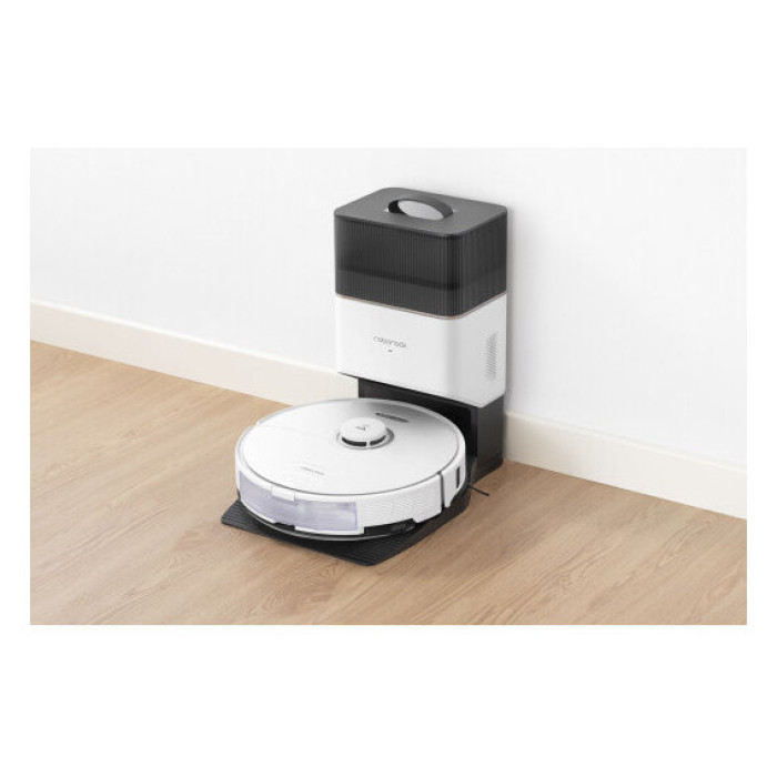 Робот пилосос Xiaomi RoboRock S8+ з інноваційними рішеннями у сфері автоматичного прибирання з частковим самообслуговуванням від суббренду Roborock. База самоочищення дозволяє виконати спорожнення пилозбірника автоматично, проте не призначена для промивання ганчірки та заправки бака водою. Однак це частково компенсує збільшений до 300 мл об'єм самого бака. Камера зі штучним інтелектом дозволяє розпізнавати навіть невеликі об'єкти нижче за рівень лідара, але найцікавіше - це функція управління роботом від першої особи, з можливістю відеодзвінка. Xiaomi S8 Plus отримав максимально технологічний модуль вологого прибирання: швабра не просто вібрує та має ліфт для килимків, робот ще щільно притискає її до підлоги. Новий прибиральний блок одночасно з двома гумовими валиками здатний на 30% ефективніше збирати сміття. Також модель демонструє рекордну на момент виходу потужність всмоктування - 6000 Pa. За побудову точних карт відповідає PreciSense LiDAR нового покоління здатний створювати тривимірні карти. Програма порадує Вас повним спектром функцій: побудова 3D-карти прибирання, управління від першої особи, покімнатне зонування, віртуальні обмежувачі, запам'ятовування кількох поверхів, підтримка голосових помічників, та багато іншого для зрозумілого та цікавого управління.