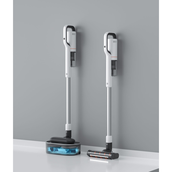 Пилосос 2в1 (вертикальний + ручний) Roidmi NEX X20 Vacuum Cleaner White / Black (XCQ06RM) - зручна і компактна акумуляторна модель вагою 2,6 кг. У ньому встановлено бесщеточний двигун Engine-X потужністю 435 Вт з максимальною швидкістю обертання 120 000 обертів в хвилину, що створює всмоктувальну потужність 145 аероватт (23,5 кПа). Модель служить для сухого та вологого прибирання домашніх приміщень. Пристрій працює виконується від 8 літієвих батарей загальною ємністю 2500 мАг, які управляються системою BMS-X.
