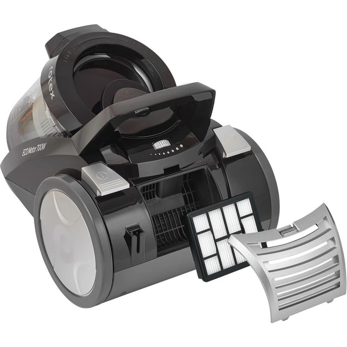 DUAL CYCLONE SYSTEM, Живлення - 220-240В, 50Гц., Потужність 700 Вт ECO MOTOR, Клас енергоспоживання A, Об'єм контейнера 4 л, Регулювання потужності на корпусі, Металева телескопічна трубка, Високоефективна щітка з перемикачем щілинна / для пилу), Щітка для паркету, Вихідний HEPA фільтр, Автоматичне змотування електропроводу (довжина 5м.), Колір: чорний. Гарантія – 1 рік.