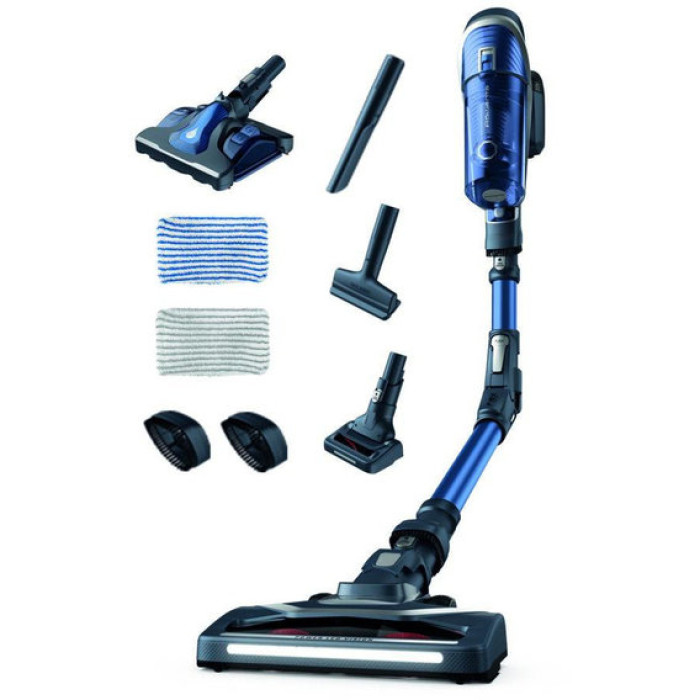 Вертикальний + ручний пилосос (2в1) Rowenta X-FORCE 8.60 AQUA RH9690WO є зручним, легким та продуктивним пристроєм для сухого прибирання. Електродвигун максимальною потужністю 185 Вт та циклонна технологія, забезпечуючи постійно високу потужність всмоктування, ефективно видаляють пил та сміття з різних поверхонь. При необхідності сила всмоктування збільшується перемикачем Boost, розташованим на ручці. Набір із чотирьох насадок дозволяє виконувати очищення швидко та якісно. Слід виділити насадку з підсвічуванням Power LED, насадку, що миє, Aqua Head, а також шарнірну трубку для прибирання важкодоступних місць, наприклад, під низькими меблями. Енергії знімної 6-елементної літій-іонної батареї напругою 22 В достатньо для 35 хвилин безперервної роботи. Потім її слід зарядити протягом 3 годин. Зібране сміття накопичується в контейнері ємністю 0,55 літра, який легко звільняється від вмісту. Пилозбірник можна мити водою, підтримуючи у гігієнічній чистоті. Вертикальний + ручний пилосос (2в1) Rowenta X-FORCE 8.60 AQUA RH9690WO зберігається у вертикальному положенні, не займаючи багато місця.