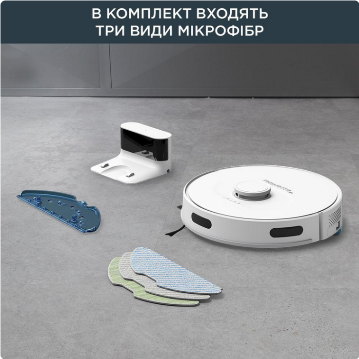 У комплект входять три види мікрофібр: для стандартного вологого прибирання, для вологого прибирання стійких забруднень і плям від домашніх улюбленців, а також мікрофібра для сухого прибирання, що усуває пил та алергени - для розумного та ефективного прибирання кожного сантиметра вашого будинку.