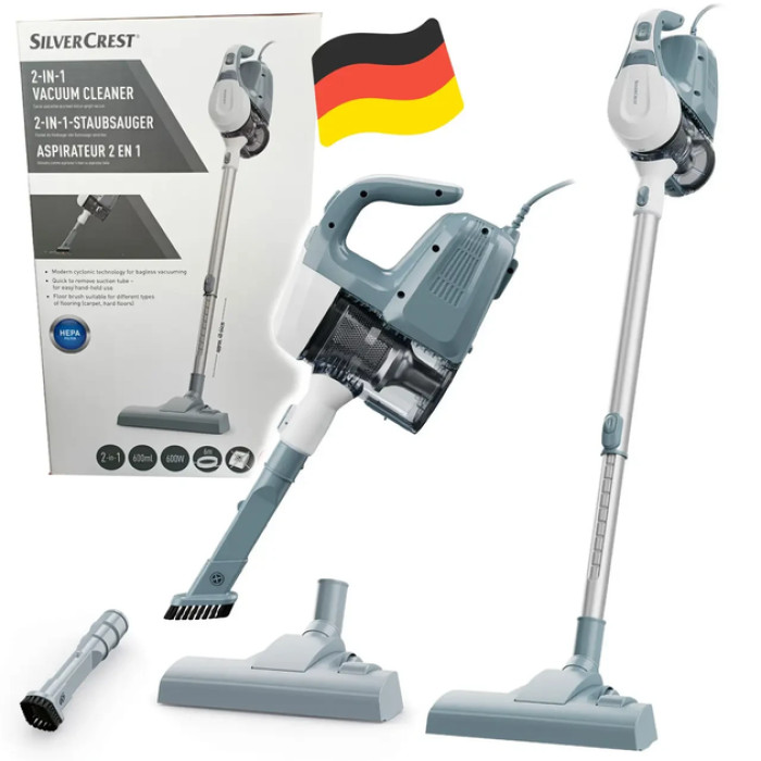 Silver Crest SHZK 600 A2 є пилососом для сухого прибирання. Прилад поєднує потужні характеристики і міцний корпус. Завдяки чудовим портативним можливостям, пилосос стане гарним доповненням до домашньої техніки. Потужність пилососа складає 600 Вт. Для складання сміття та пилу, прилад оснащений пилозбірником об'ємом 0.6 літра. Пилосос оснащений циклонною системою збирання пилу. Основною перевагою даної системи є безперебійна потужність. Пилосос збирає пил із високою швидкістю, навіть якщо контейнер переповнений. Повітря виходить чистим завдяки спеціальному фільтру. Для якісного прибирання до комплекту входить кілька насадок. Для чищення підлоги та килима використовується основна щітка. Для доступу до важкодоступних місць пропонується використання щілинної насадки, також є мала щітка. Вертикальний пилосос має малу вагу, прибирання не буде стомлюючим для Вас, для комфортного використання оснащений ергономічною ручкою, яка зручно розташовується у Вашій руці. Якісні компоненти та міцний пластиковий корпус є запорукою довговічності даної моделі пилососу.