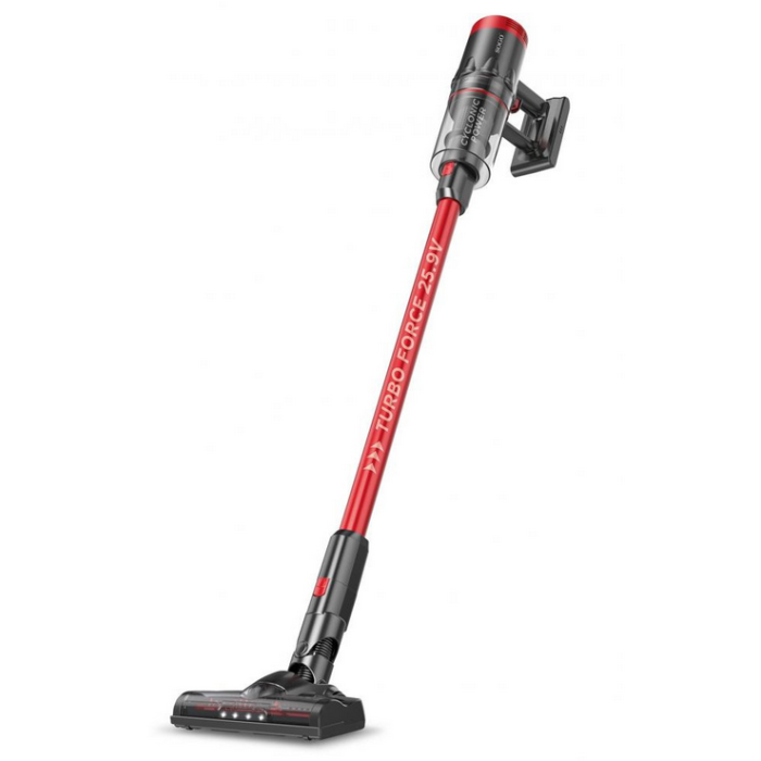 Аксесуари в комплекті: адаптер змінного струму, кутова насадка 2 в 1, щітка диванна, настінне кріплення і підставка для зарядки.