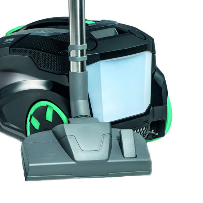 Миючий пилосос з аквафільтром Thomas DryBOX Amfibia Family (788599) виготовлений у Німеччині. Його корпус виконаний у стильному сучасному дизайні у гармонійному поєднанні суворого чорного кольору та яскраво-блакитних вставок. Мережевий прилад обладнаний електродвигуном потужністю 1700 Вт, що створює силу всмоктування 380 Вт. Пристрій оснащений циклонною системою та служить для сухого та вологого прибирання, а також збору розлитої на підлозі рідини. Особливістю моделі є дві системи фільтрації: AquaBOX з контейнером об'ємом 1,8 літра та DryBOX, ємність резервуару якого становить 2,1 літра. Один з цих пилозбірних контейнерів встановлюється всередину, залежно від виду збирання: сухого або вологого. Повітря, що виходить, очищається миючим НЕРА-фільтром, що підтримує чистоту в кімнаті під час роботи. Миючий пилосос з аквафільтром Thomas DryBOX Amfibia Family (788599) укомплектований 7 насадками, які не залишать пилу жодного шансу, в якому важкодоступному місці вона не знаходилася.