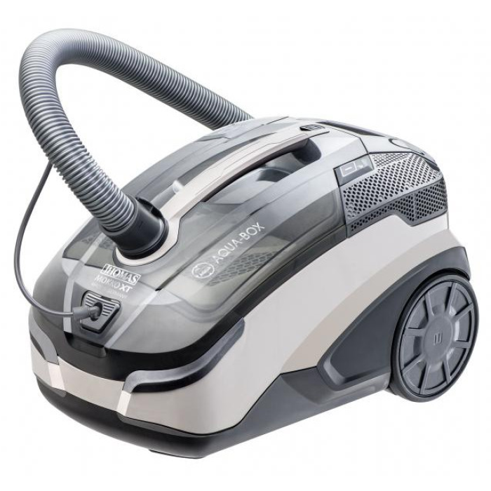 Якісний сучасний пилосос Thomas MOKKO Aqua Box XT має великий функціонал і відмінні технічні характеристики, за рахунок чого і завоював велику популярність серед споживачів. Thomas MOKKO Aqua Box XT, крім прибирання приміщень, має ще й можливість здійснювати вологе очищення повітря, усуваючи з нього небезпечні для людини частинки пилу та алергени, при цьому зволожуючи його. Встановлений у ньому і спеціальний гігієнічний фільтр, що миється, в комплекті з MICRO-фільтром вихідного повітря. Він також оснащений зовнішнім знімним резервуаром, призначеним для наповнення миючого засобу, об'ємом 1,8 л, і простим електронним керуванням "Touch-Tronic". Не забув виробник і про стандартні функції, передбачивши Thomas MOKKO Aqua Box XT необхідні коліщатка для свободи переміщення і більшої маневреності, автоматичне змотування шнура і 2 положення паркування для зберігання.