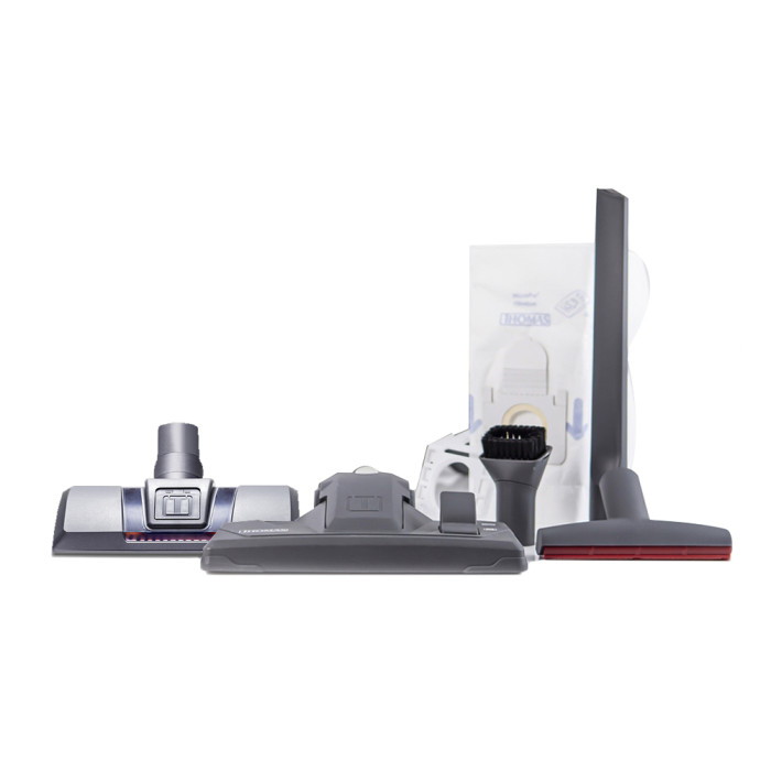Якщо ви є власником довгошерстого собаки або пухнастої кішки, перед придбанням тієї чи іншої техніки для дому завжди звертаєте увагу на високу якість товару та його надійність, і зараз підшукуєте ефективний та максимально зручний насос, вам неодмінно підійде модель Thomas Perfect Air Animal Pure. Вона укладена в корпус із удароміцного пластику сіро-жовтого кольору. При габаритах 467х318х294 мм важить близько 7 кг. Доукомплектована телескопічною трубкою з нержавіючої сталі, 8-метровим мережевим кабелем із системою автоматичного змотування, йде разом з цілим рядом різних насадок, що робить її справді універсальною. Серед інших переваг Thomas Perfect Air Animal Pure важливо згадати про унікальну систему водяної фільтрації, сертифікованої для людей, які страждають на алергію. Радіус дії цього помічника дорівнює 11 метрів.