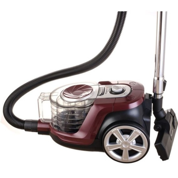 Надійність та якість за прийнятною ціною. Регулятор потужності та місткий (4 л) знімний пилозбірник робить пилосос ідеальним помічником у боротьбі із забрудненнями підлог, килимових та текстильних поверхонь, а також ефективним для щоденного використання. Крім основної насадки, що має два режими (з і без щіточки), в комплект входить щілинна насадка, що дозволяє добиратися до важкодоступних місць, і насадка для м'яких меблів. Пристрій оснащений системою подвійний циклон, призначеної для всмоктування і розподілу як габаритних частинок сміття, так і дрібніших забруднень. Низький рівень шуму, автоматична смотка шнура, зручна ручка перенесення та вертикальний тримач для паркування телескопічної труби забезпечують комфорт у використанні.