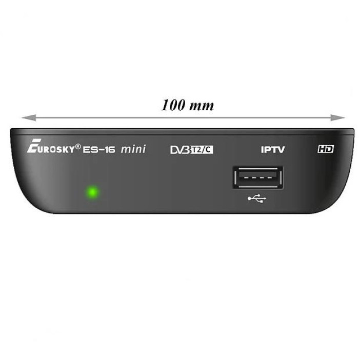 Ресивер Eurosky ES-16 mini - новий ефірний цифровий ресивер для прийому радіосигналу та ефірного телебачення у стандарті DVB-T/T2 у SD та HD чіткості.