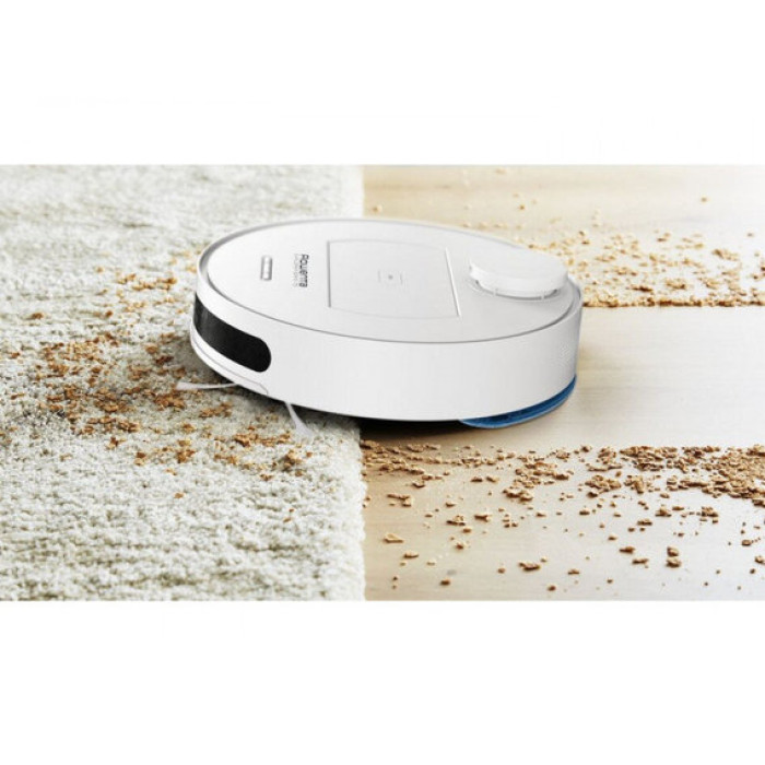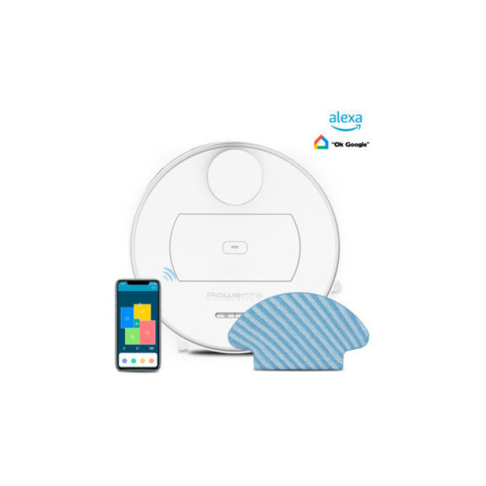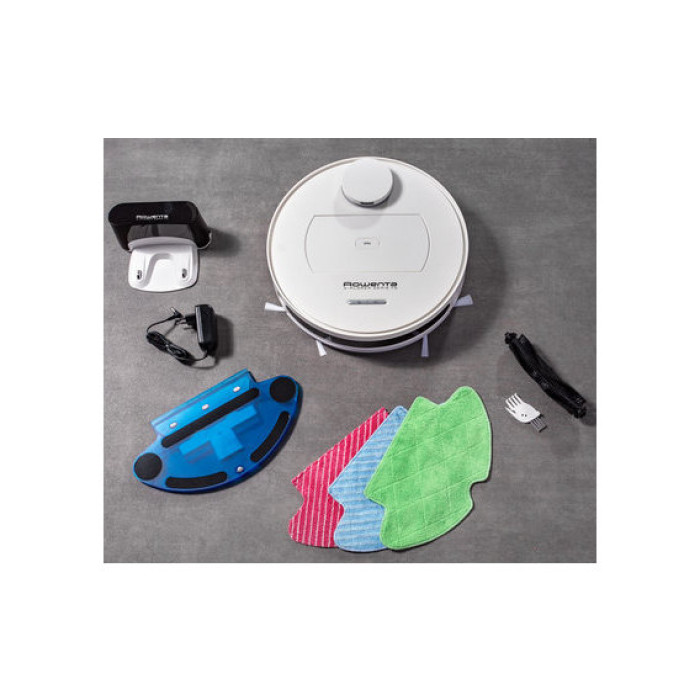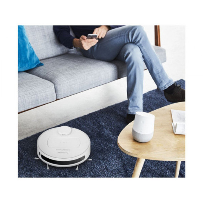 Робот-пилосос з вологим прибиранням Rowenta X-Plorer Series 75 Total Care RR7687WH – продуктивний багатофункціональний апарат з інтелектуальною начинкою. Він живиться від ємного літій-іонного акумулятора, що забезпечує 150 хвилин безперервної роботи, а відновлює повний заряд за 4 години підзарядки. Пристрій функціонує в чотирьох режимах і здатний створювати всмоктувальну потужність до 2700 Па, причому її рівень регулюється автоматично, збільшуючись на килимових покриттях. Система навігації, що включає різні типи датчиків і камеру, формує карту приміщення, а потім контролює рух моделі по прокладеному оптимальному маршруту. Повітряний потік, що виходить, очищається НЕРА фільтром, який затримує частинки пилу і алергени. Керується робот-пилосос Rowenta X-Plorer Series 75 Total Care RR7687WH віддалено зі смартфона та голосом, використовуючи програми Google Assistant та Amazon`s Alexa.