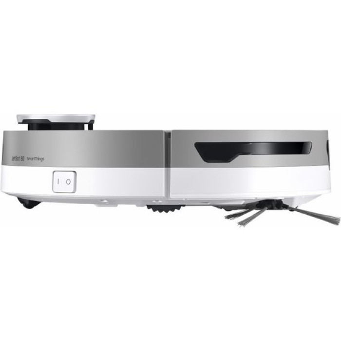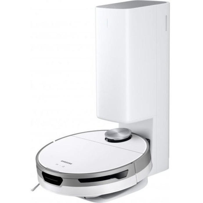 Робот-пилосос Samsung Jet Bot+ VR30T85513W призначений для регулярного сухого прибирання кімнат. Він виготовлений у білому циліндричному корпусі діаметром 350 мм та максимальною висотою 99,8 мм. Модель оснащена літій-іонним ємним акумулятором, енергії якого достатньо для роботи протягом 90 хвилин, після чого необхідна 4-годинна підзарядка. Апарат поставляється разом зі станцією очищення місткістю 2,5 літра, куди автоматично вивантажується сміття з пилозбірника, що миється, об'ємом 300 мл. Надійний інверторний мотор, мультициклонний фільтр Jet Cyclone та високоефективна щітка забезпечують стабільно високу продуктивність збирання пилу та сміття. Інтелектуальна система Intelligent Power Control визначає тип покриття, щоб встановити оптимальний рівень потужності всмоктування, збільшуючи його на килимах. За допомогою даних із лазерного та сенсорних датчиків навігаційна система LiDAR вибудовує карту приміщення та вибирає оптимальну траєкторію руху без повернень на вже пройдену ділянку. Робот-пилосос Samsung Jet Bot+ VR30T85513W управляється віддалено зі смартфона та голосовими командами.