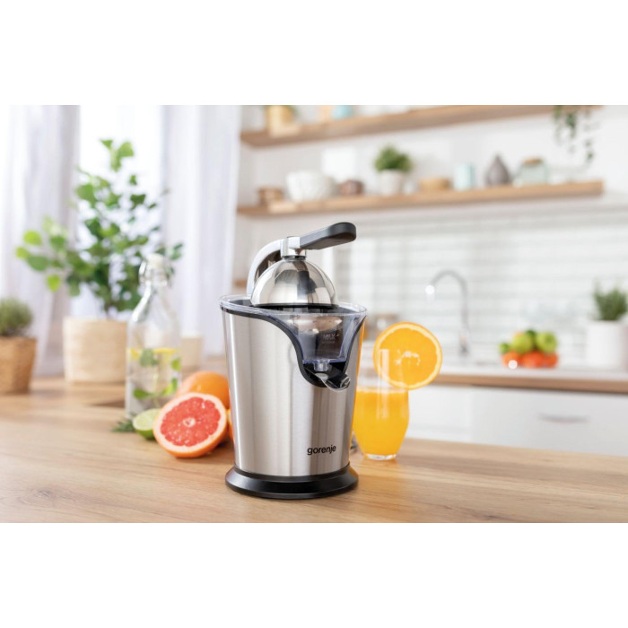 Натисніть на м'який важіль, злегка натисніть на фрукт і автоматично увімкнеться тихий мотор. Спеціальна конструкція важеля та конуса дозволяє повністю видобувати корисний сік із лимонів, лаймів, апельсинів, грейпфрутів та мандаринів.