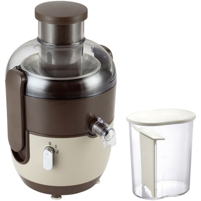 Соковитискач відцентровий Liberty JC-650 C представлений на ринку українською багатопрофільною компанією під своєю маркою. Модель розроблена в корпусі із пластику коричневого та кавового кольору та сталі. Вона обладнана електродвигуном потужністю 650 Вт, що функціонує на двох швидкостях, що вибираються механічним перемикачем. Завдяки широкій горловині діаметром 65 мм фрукти та овочі можна подавати на обробку цілими без розрізання на частини. Така технологія дозволяє прискорити та полегшити переробку плодів. Отриманий сік прямою подачею надходить у невеликий градуйований контейнер об'ємом 0,4 літра. При великій кількості продукції напій слід переливати до іншого резервуару, звільняючи контейнер для наступної порції соку. Макуха автоматично відокремлюється і збирається в ємність розміром 0,6 літра. Відцентровий соковитискач Liberty JC-650 C не ввімкнеться, якщо його неправильно зібрали, і автоматично відключається при перегріві.