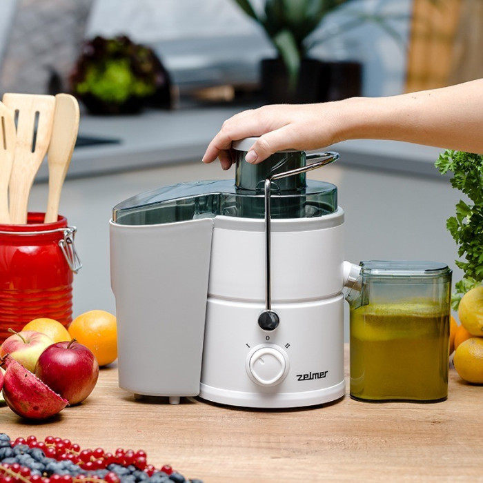 Тому Zelmer розробила соковижималку із ситом із нержавіючої сталі ZJE3800, яка перетворює фрукти та овочі на напої за лічені хвилини. Широкий завантажувальний отвір з діаметром до 65 мм дозволяє соковижималці працювати з цілими фруктами та овочами без необхідності нарізування на дрібні шматочки. Великий контейнер для соку (0,5) та мезги (до 1,5) також входить у комплект, а функція Anti-drip допомагає запобігти перебігу.