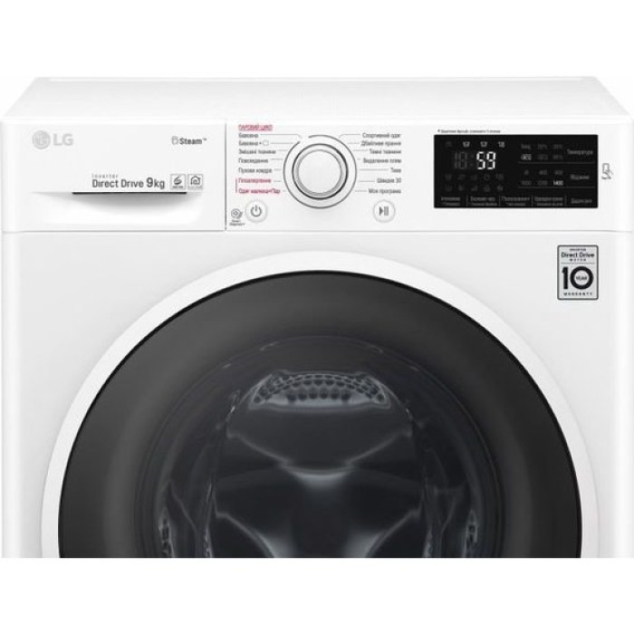 Пральна машина автоматична LG F4J6VS0W виготовляється в сучасному дизайні в корпусі білого кольору з контрастними чорними дверцятами. Через фронтальний люк діаметром 35 см, що відкривається на 150 градусів, до неї завантажується 9 кг сухої білизни на один цикл. Модель обладнана надійним та довговічним інверторним двигуном з прямим приводом. Технологія 6 Motion обертає бульбашковий барабан шістьма різними способами, забезпечуючи ефективне очищення речей від забруднень, а при віджиму кількість обертів досягає 1400 за хвилину. Спеціальний режим видаляє неприємний запах із барабана, підтримуючи його у гігієнічній чистоті. За допомогою функції пари Steam одяг позбавляється вірусів, бактерій та алергенів. Технічний стан пристрою постійно контролюється системою мобільного діагностування Smart Diagnosis. Керується автоматична пральна машина LG F4J6VS0W поворотним перемикачем, кнопками та віддалено зі смартфона.