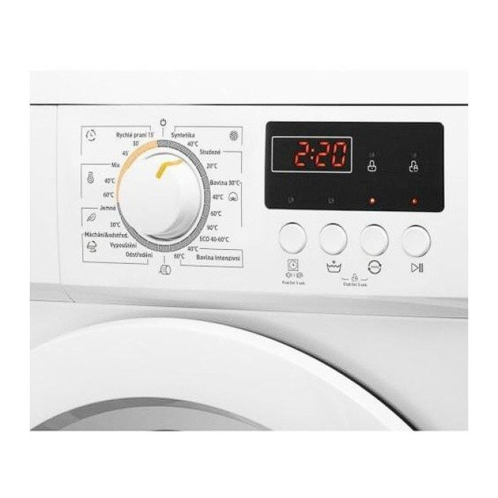 Пральна машина з переднім завантаженням макс. 6 кг, віджимання 1000 об/хв, клас енергоспоживання E (новий стандарт), електронне управління, дисплей, відстрочка старту, захист від дітей, глибина 40 см, колір білий.
