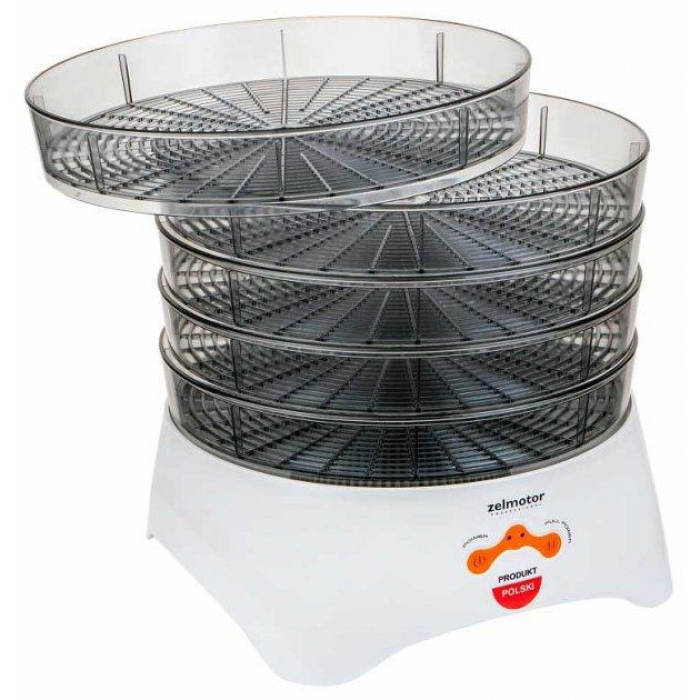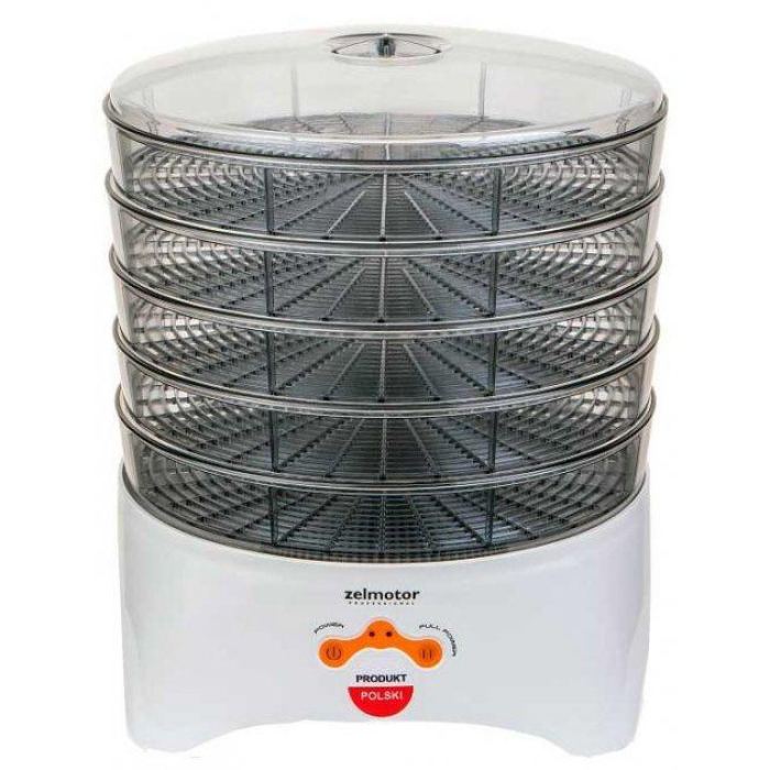 Сушарка харчова марки Zelmotor потужністю 450 вт. Пристрій для зручного сушіння фруктів, трав та грибів у домашній кухні. Дуже зручна у повсякденному використанні. Модель оснащена п'ять лотків для сушіння, що встановлюються незалежно один від одного. Великий простір між секціями допомагає у ретельному сушінні продуктів, кришка має великий отвір для вентиляції, що допомагає швидше відводити вологу. Вентилятор працює у двох режимах, що дозволяє контролювати процес сушіння продуктів.