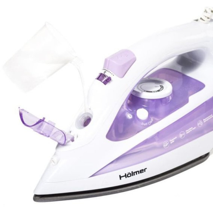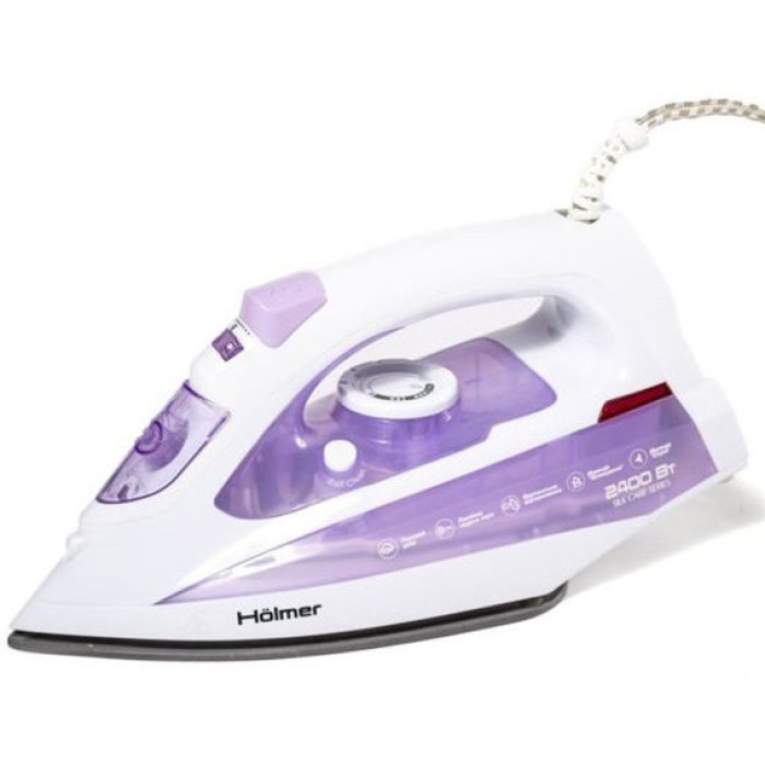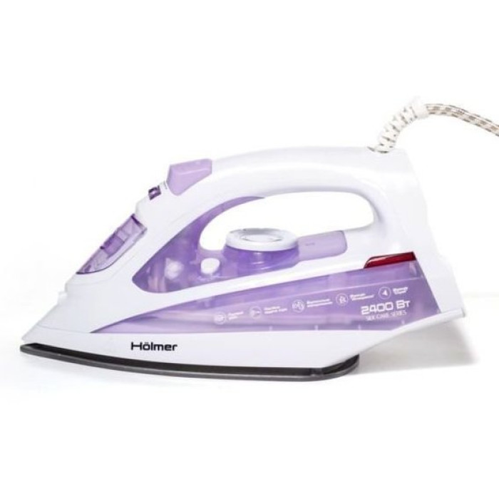 Праска Hölmer HIT-2430 для сухого прасування та з парою, має потужність 2400 Вт (час нагріву max ~32 сек), паровий удар 120 г/хв, постійну подачу пари 30 г/хв. Тефлонове покриття підошви забезпечує легке ковзання тканин різних типів, розгладжуючи навіть найскладніші ділянки. Диск регулятора температури та кнопки управління виконані із пластику. Шийка для затоки води з гумовим ущільнювачем. Функція “Вертикальне відпарювання” дозволить легко відпарювати делікатні тканини, фіранки та одяг на вішалках у вертикальному положенні. Система “Антикрапля” запобігає попаданню води, що не випарувалася на тканину під час прасування. Self Clean - система для очищення парогенератора праски від нальоту та накипу. Гнучкий шнур у тканинному обплетенні (~170 см) оснащений кульовим кріпленням, яке захищає від перекручування. Мірна склянка в комплекті. Керування Регулятор температури Кнопки парового удару та розбризкування води Регулятор подачі пари (три режими роботи) Кнопка очищення від накипу Функції Антикапля Розбризкування води Вертикальне відпарювання Система очищення від накипу “Self Clean”