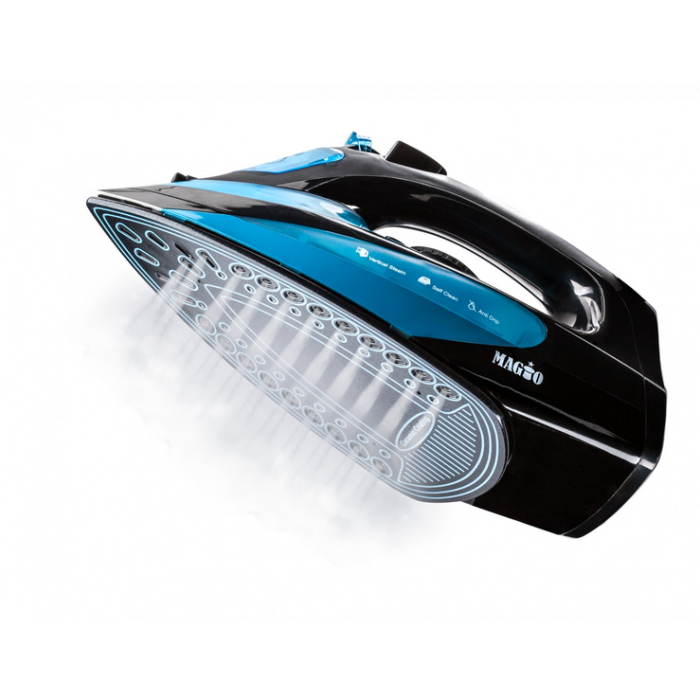 Праска Magio MG-138 є оптимальним варіантом для побутового використання, адже вона володіє всім необхідним функціоналом і має відмінні технічні характеристики, а стильний дизайн бірюзово-чорного кольору з ергономічною ручкою добре доповнює його практичність. Потужність Magio MG-138 досягає 2200 Вт, він пропонує 5 різних режимів, які Ви зможете вибрати в залежності від типу тканини, а для досягнення кращого результату та легшого ковзання його підошва має якісне керамічне покриття. Резервуар, об'ємом 240 мл, не вимагатиме частого поповнення, а прасування з парою полегшить і прискорить процес. Є в ньому і функції вертикального відпарювання, парового удару, спрею, а також система самоочищення, що продовжує термін служби, і система "антикапля", що не допускає неприємних сюрпризів при прасуванні Magio MG-138.