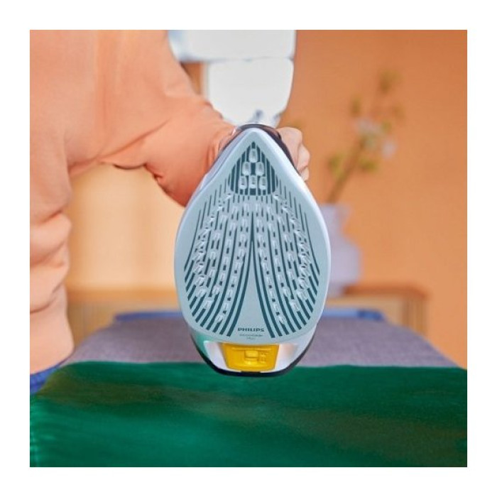 Праска Philips DST7030/20 має продуманий корпус, який поєднує в собі елементи ергономіки та приємний зовнішній вигляд. Дана модель має досить велику площу підошви, загострений носик, що швидко проходить всі складки, і приємний пластиковий корпус у синіх тонах, який прикрасить собою навколишнє оточення.