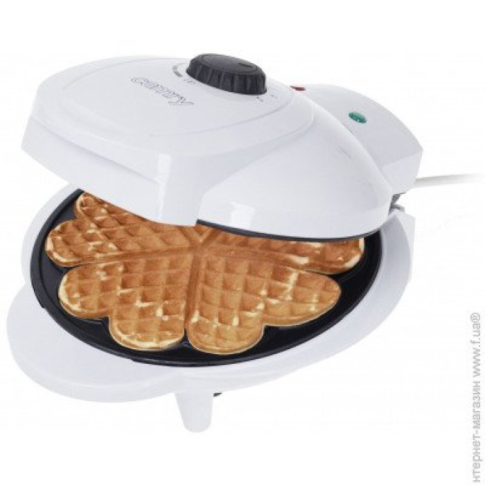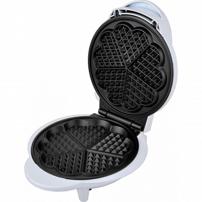 Вафельниця потужністю 1000 Вт із термостатом. Ідеально підходить для приготування хрустких вафель. Одночасно випікати 2 вафлі. Оснащений нагрівальними пластинами, покритими білим керамічним антипригарним покриттям, що полегшує очищення. Також зручний у транспортуванні завдяки місцю для змотування шнура та готовності зберігати його у вертикальному положенні.