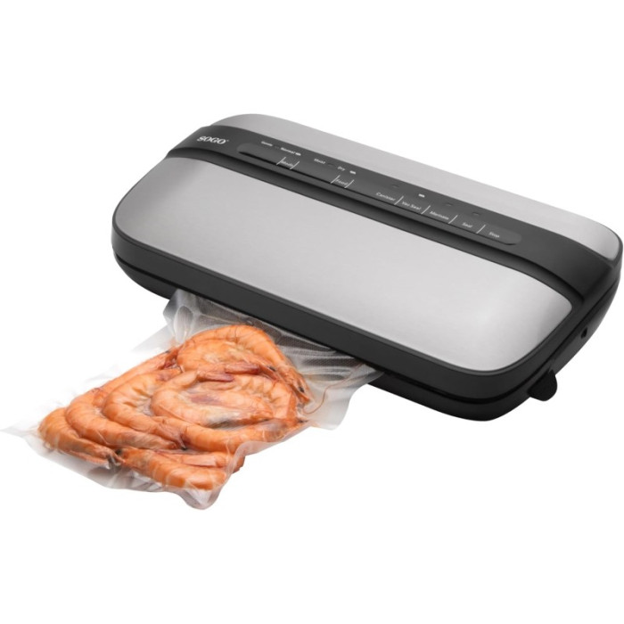 Настільний вакуумний пакувальник торгової марки Sogo – це рішення на стику середнього та просунутого класу. Модель характеризується середніми габаритами 40х21х10 см та забезпечує виконання зварювального шва довжиною до 30 см, чого зазвичай достатньо для типових побутових потреб. До сильних боків також відноситься потужний насос, який забезпечує всмоктування в 0.85 бар та гарну загальну швидкодію – аж до 24 літрів відкачування за одну хвилину.